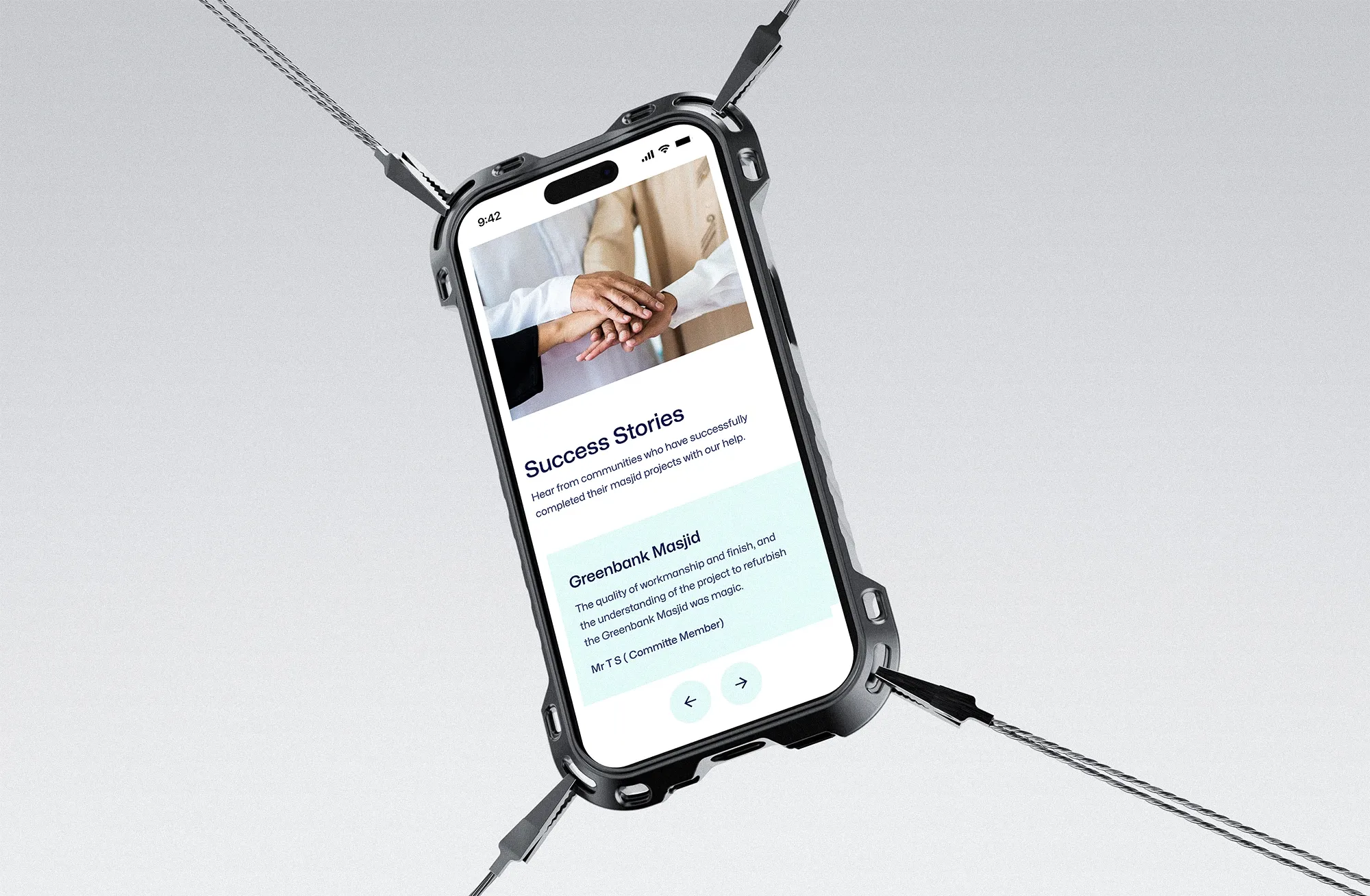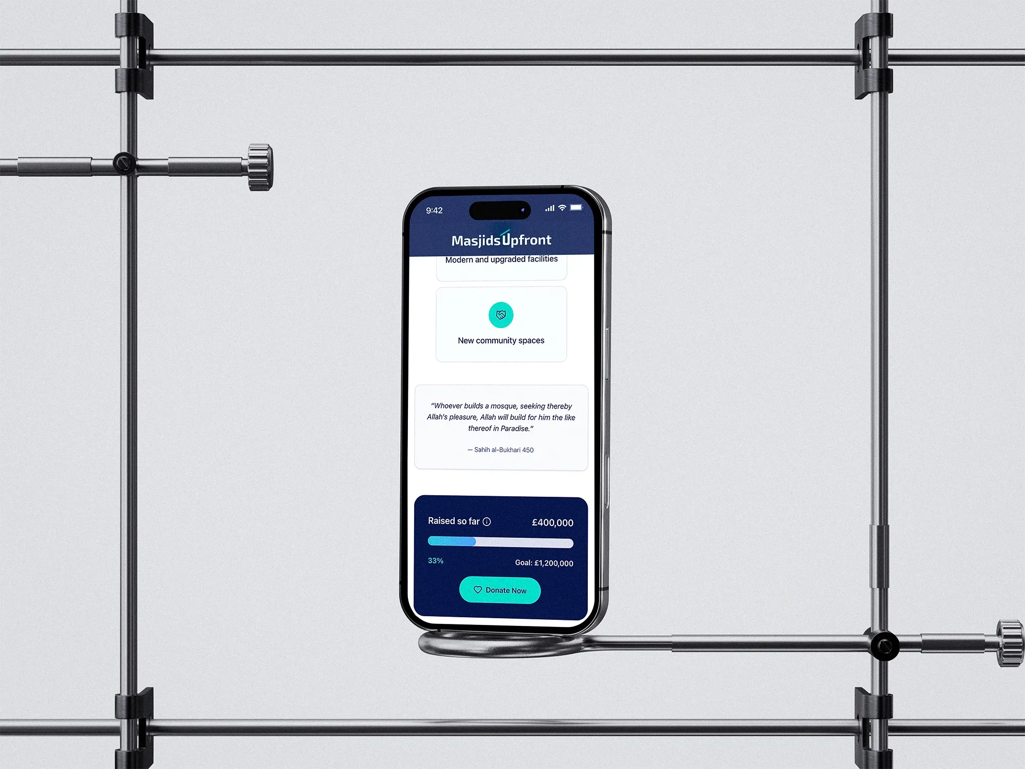 The audience: mosque committees making big decisions. They needed to understand the process, see proof it works, and get in touch — all in one scroll.