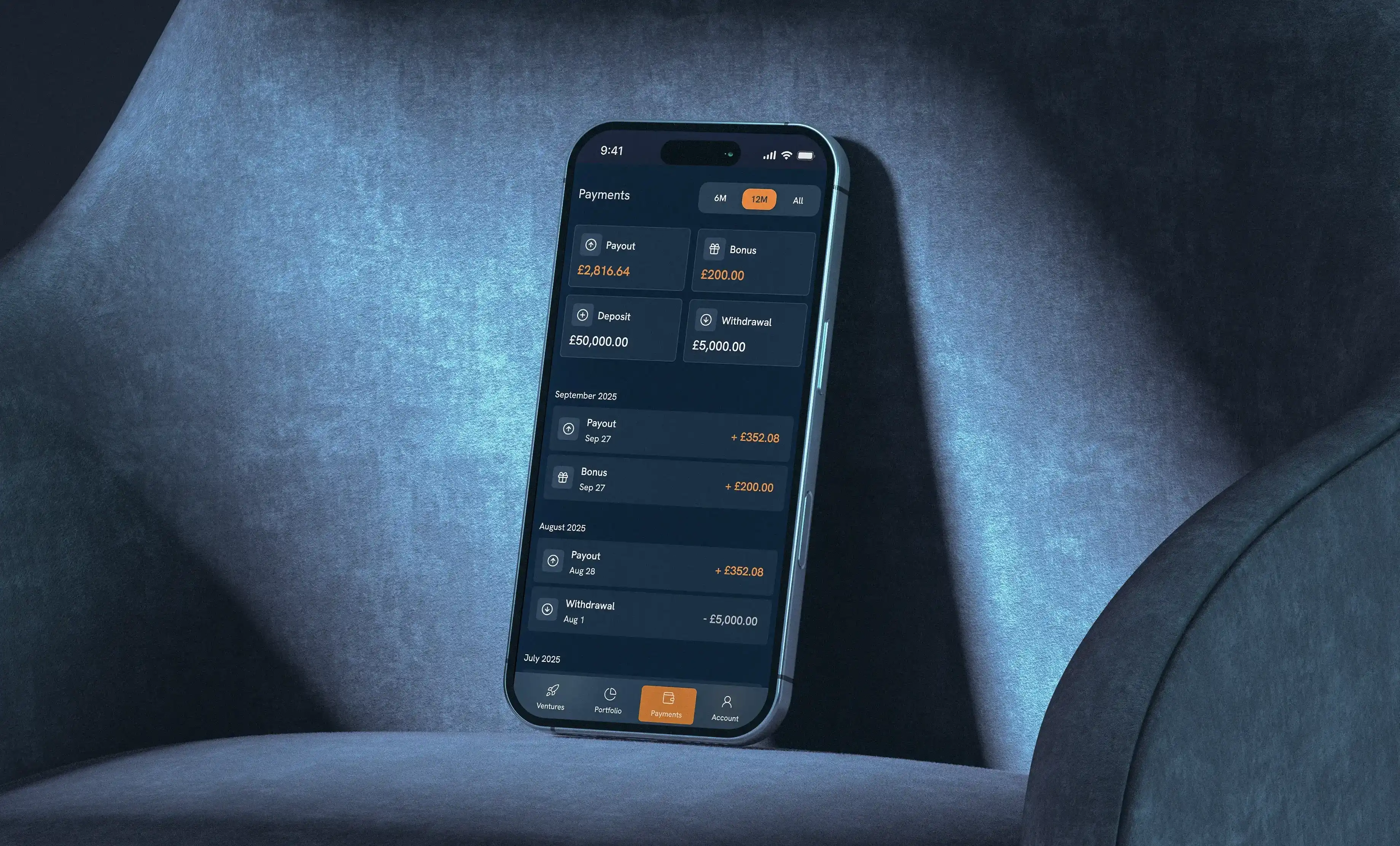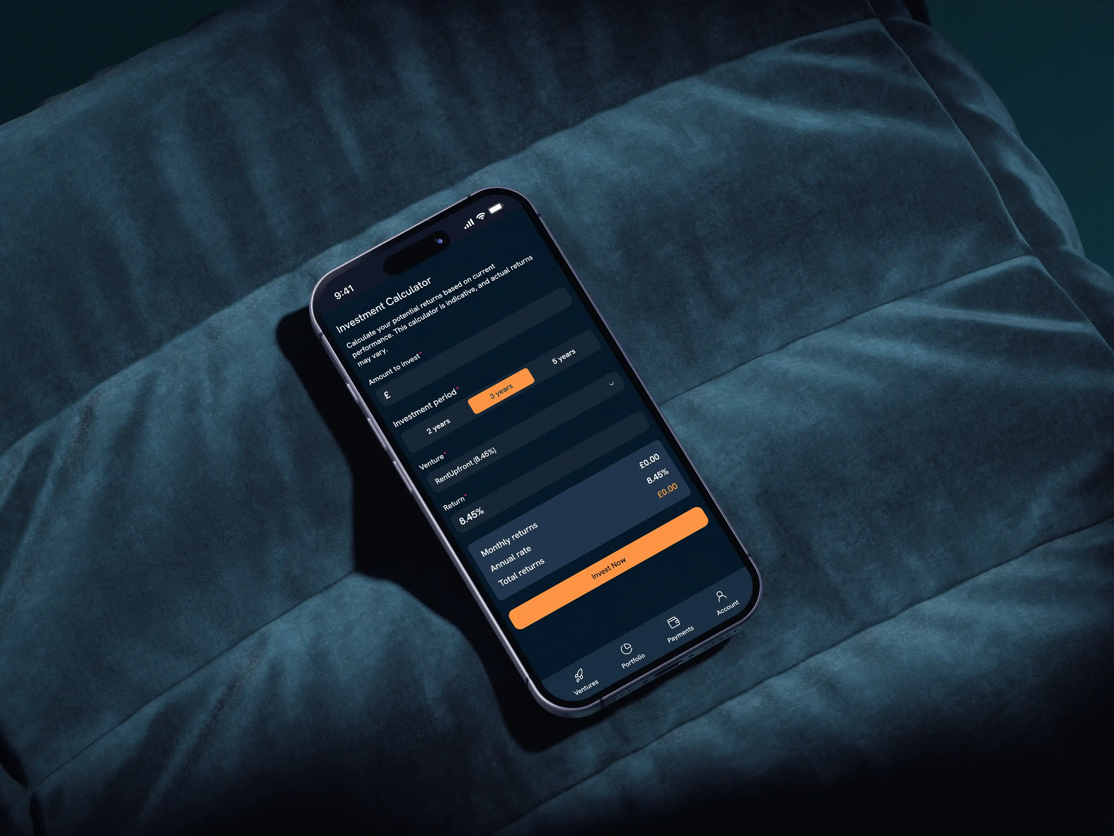 A full investor portal: portfolio tracking, payment history, documents, statements, and a returns calculator.